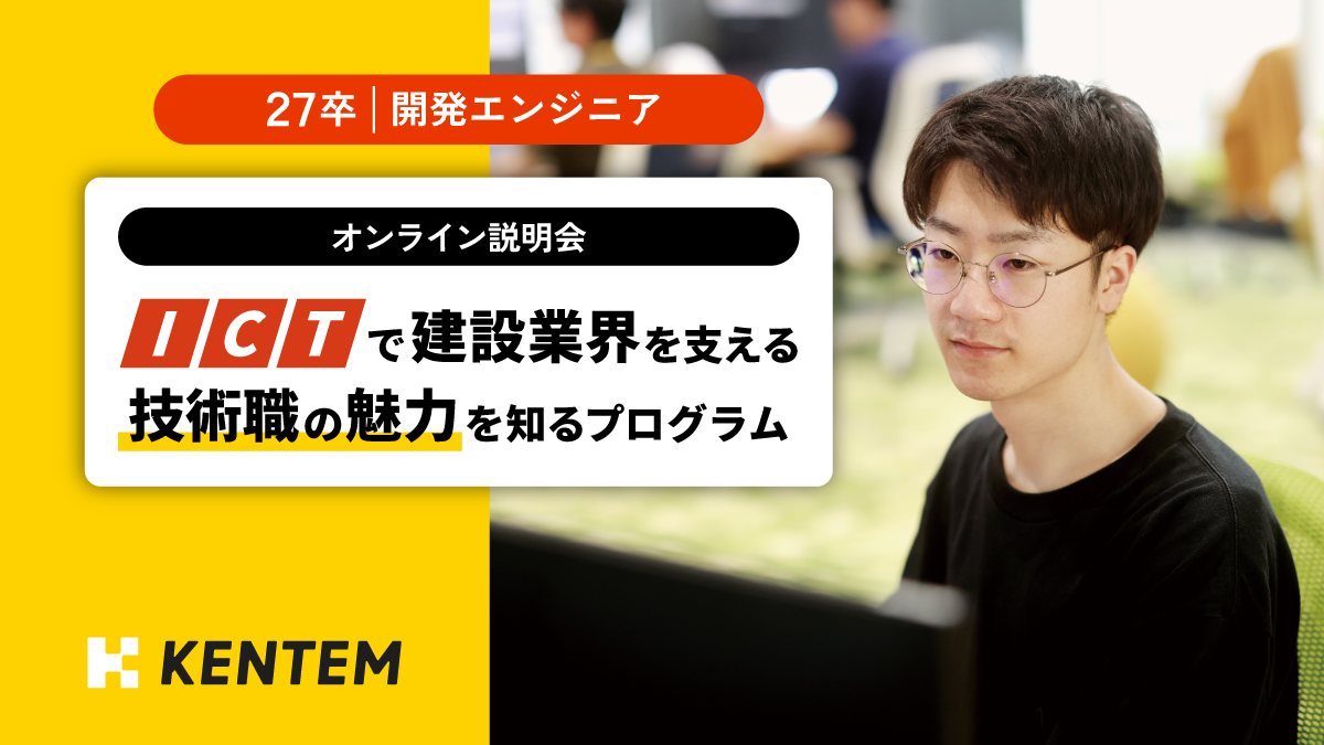 本イベントは、WEB/アプリケーションエンジニア職向けの選考直結型会社説明会です。 KENTEMのVISIONや事業内容のご紹介をはじめ、業務内容の理解・社員との交流をしていただけるプログラムとなっています!